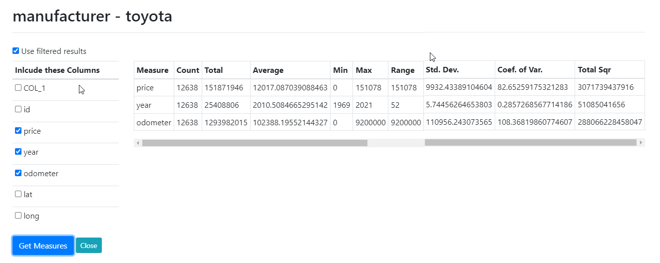 For example in the above data for the column "manufacturer" and the cell "ford"