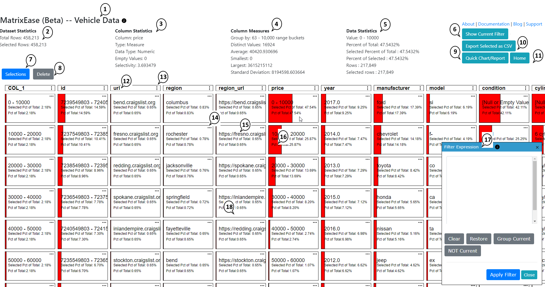 17. Filter Expression - the currently applied filter to the matrix
