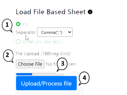 2. Choose File - press this button to choose a local file to upload for processing