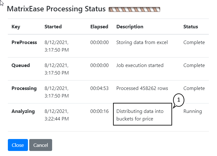 Shows the status of loading and analyzing your matrix data.