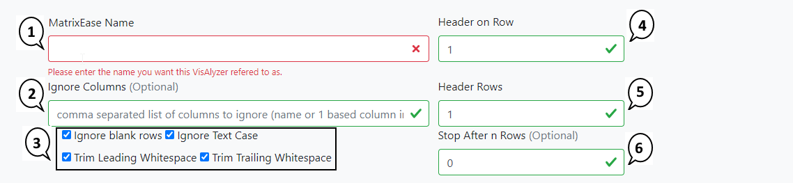 4. Header on Row - the one based index of the first row to consider as a header in the matrix data (must be 1 or greater)