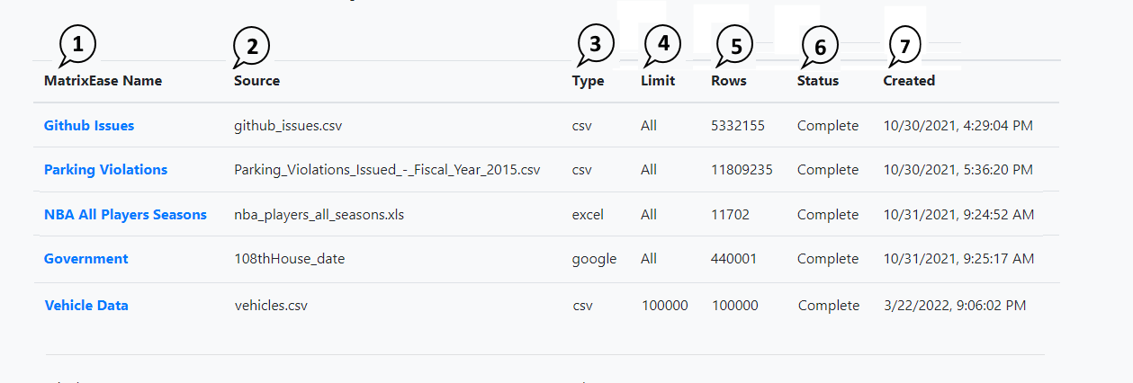 3. Type - the type of the source amtrix data (csv, Excel, Google, etc.)